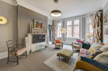 The property has a light and airy feel to it. Both the reception rooms and the master bedroom lead out onto small balconies at the front of the building. This high ceilinged flat is arranged across some 1,900 sq ft and is well presented to a good modern standard.